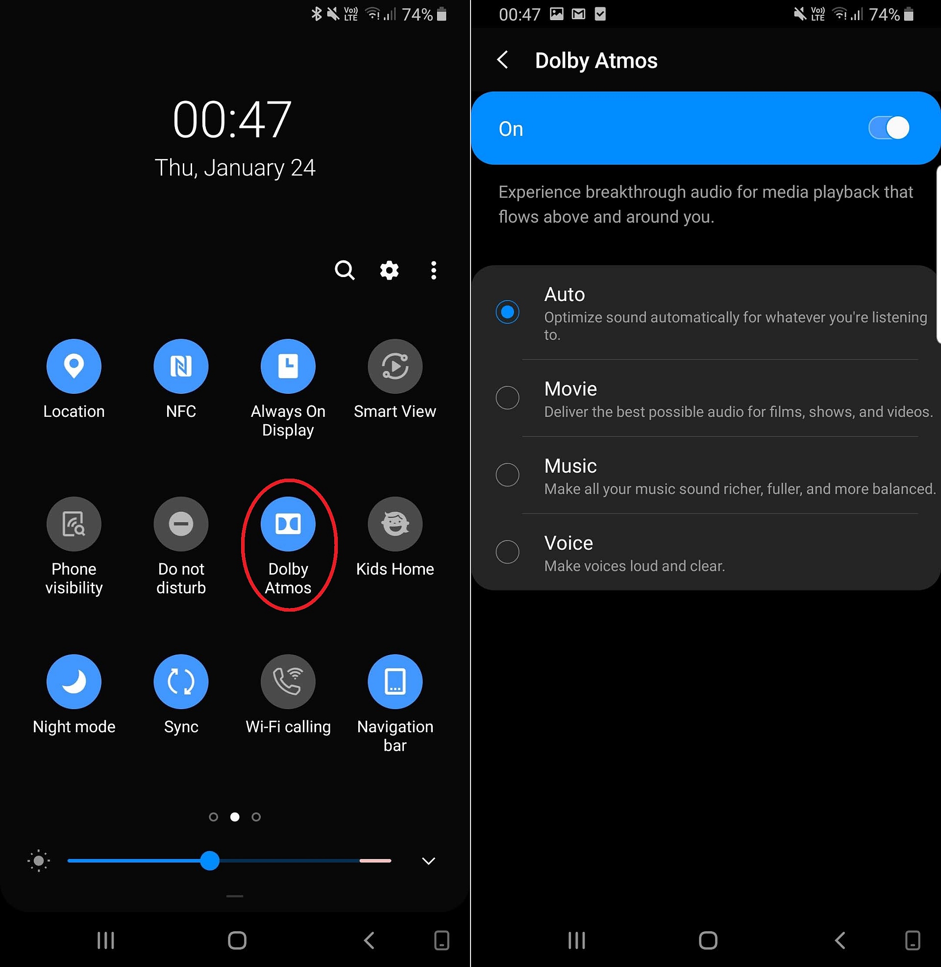 در برخی گوشیها (مانند سامسونگ، شیائومی یا وانپلاس)، حالت صدای سهبعدی یا «Dolby Atmos» وجود دارد: